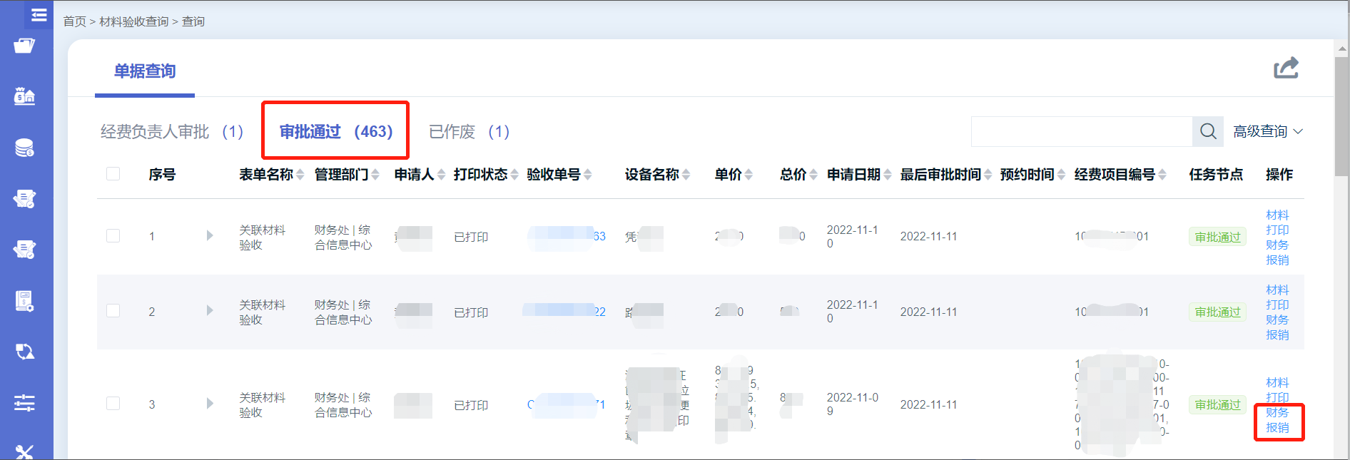 为进一步改善师生用户体验,提升广大师生满意度,学校对财务和资产系统进行了优化,实现资产系统中材料验收单与财务系统中报销单的关联,使材料费的报销更加便捷、高效。相关说明如下: