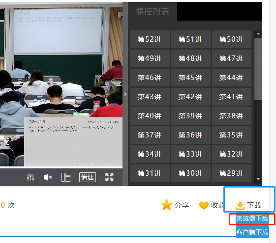 4、点击“下载”,选择“浏览器下载”,把课程视频文件分别保存在个人本地电脑硬盘。