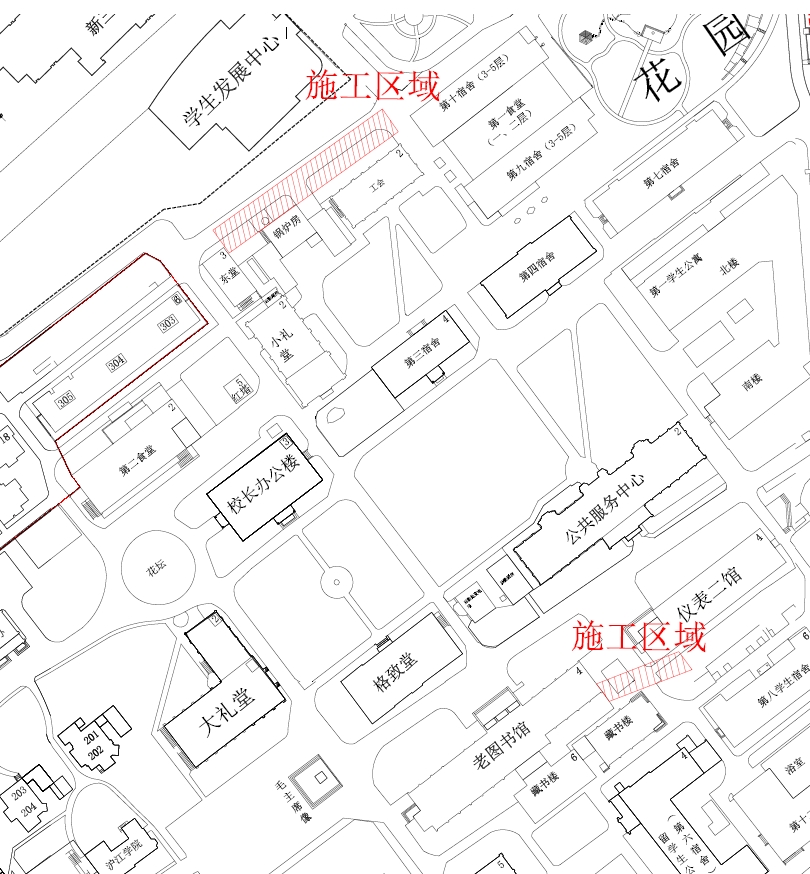 因太阳官网北校区电力改造工程施工需要,近期将在学生发展中心(新三教旁)南侧道路及老图书馆东侧道路进行电力管线排管施工(施工区域详见附图),具体施工时间见下表: