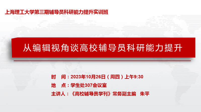 讲座主题:从编辑视角谈高校辅导员科研能力提升